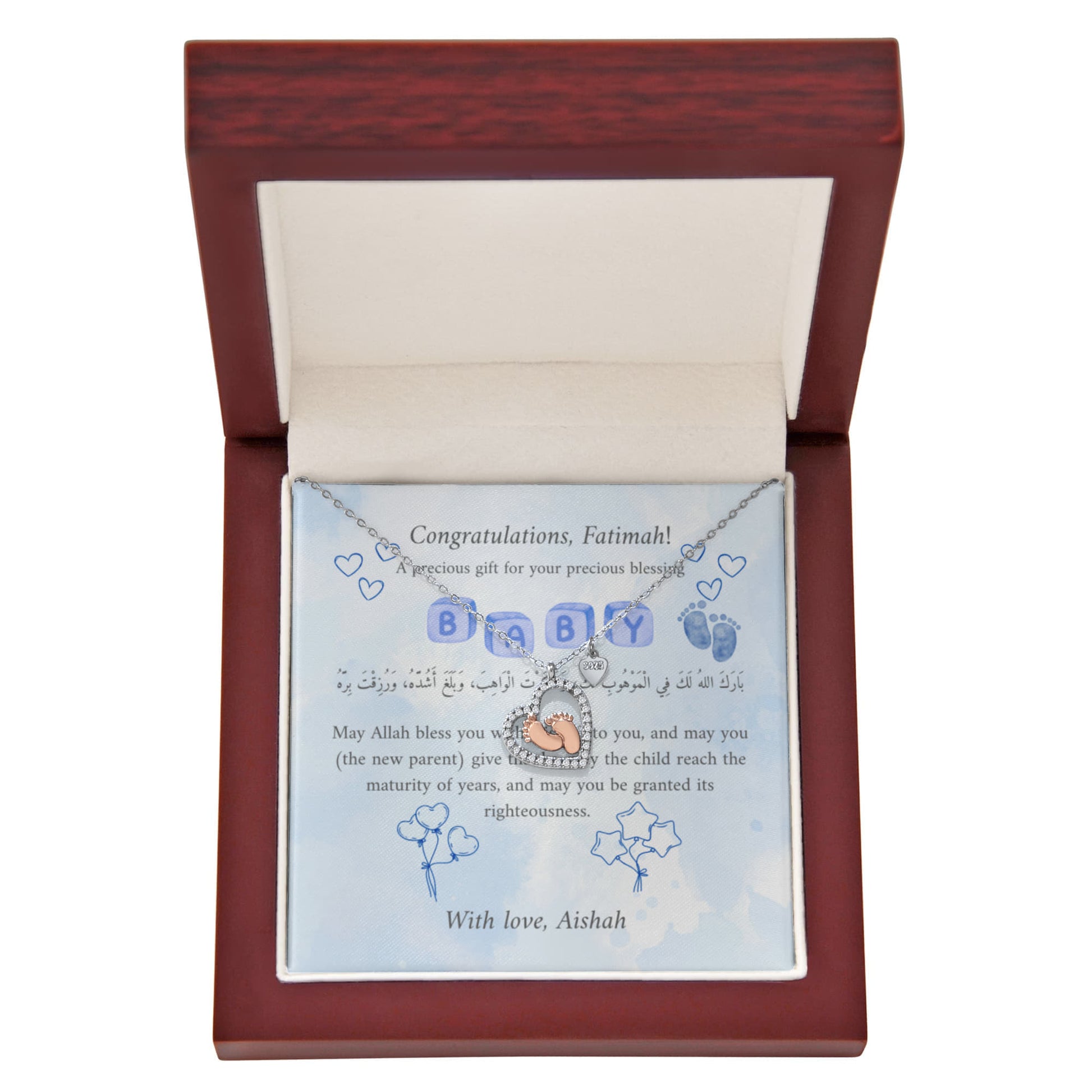 Personalized Baby Feet Heart Necklace – Sterling Silver with Rose Gold & Platinum - A Treasured Gift for New Moms & Aqeeqah