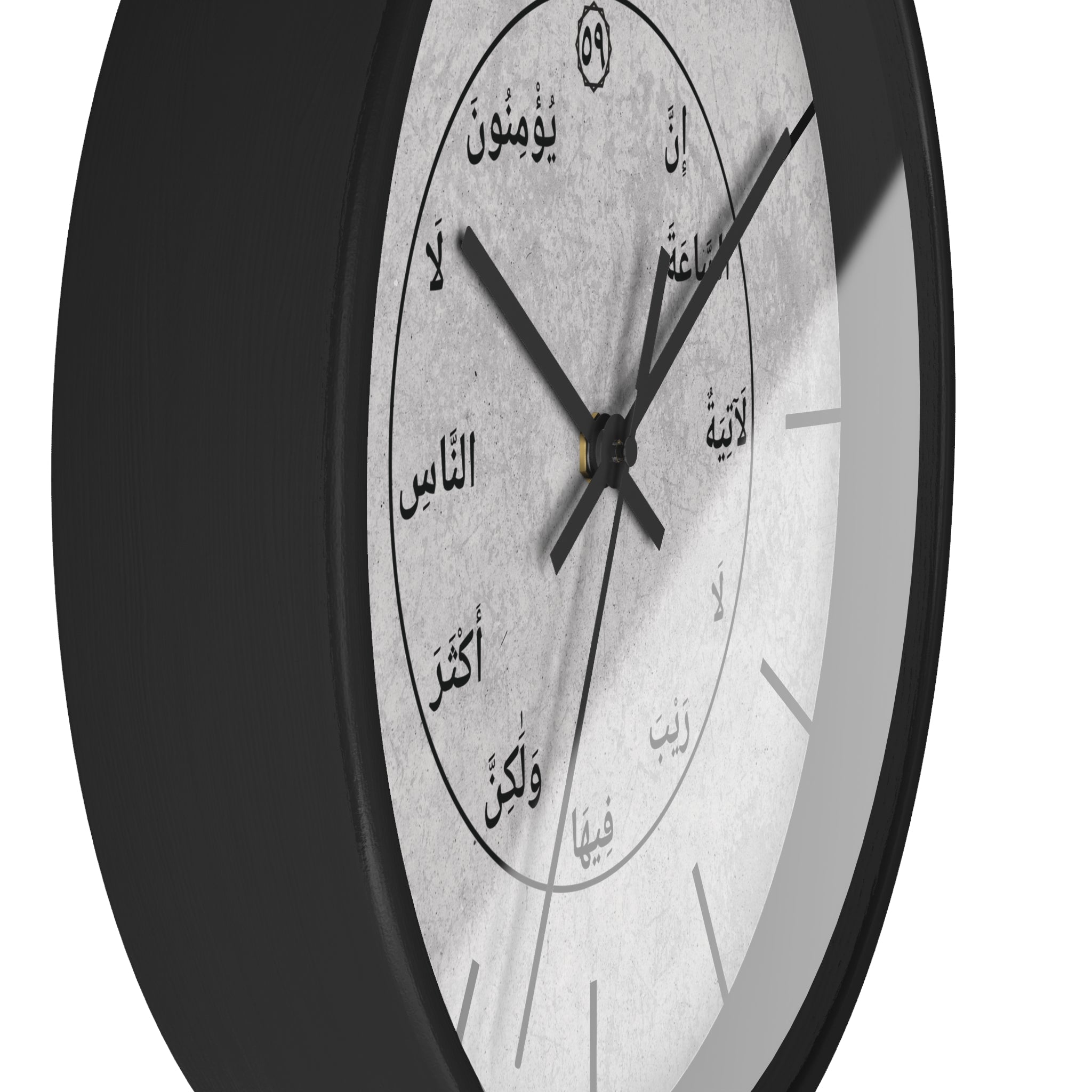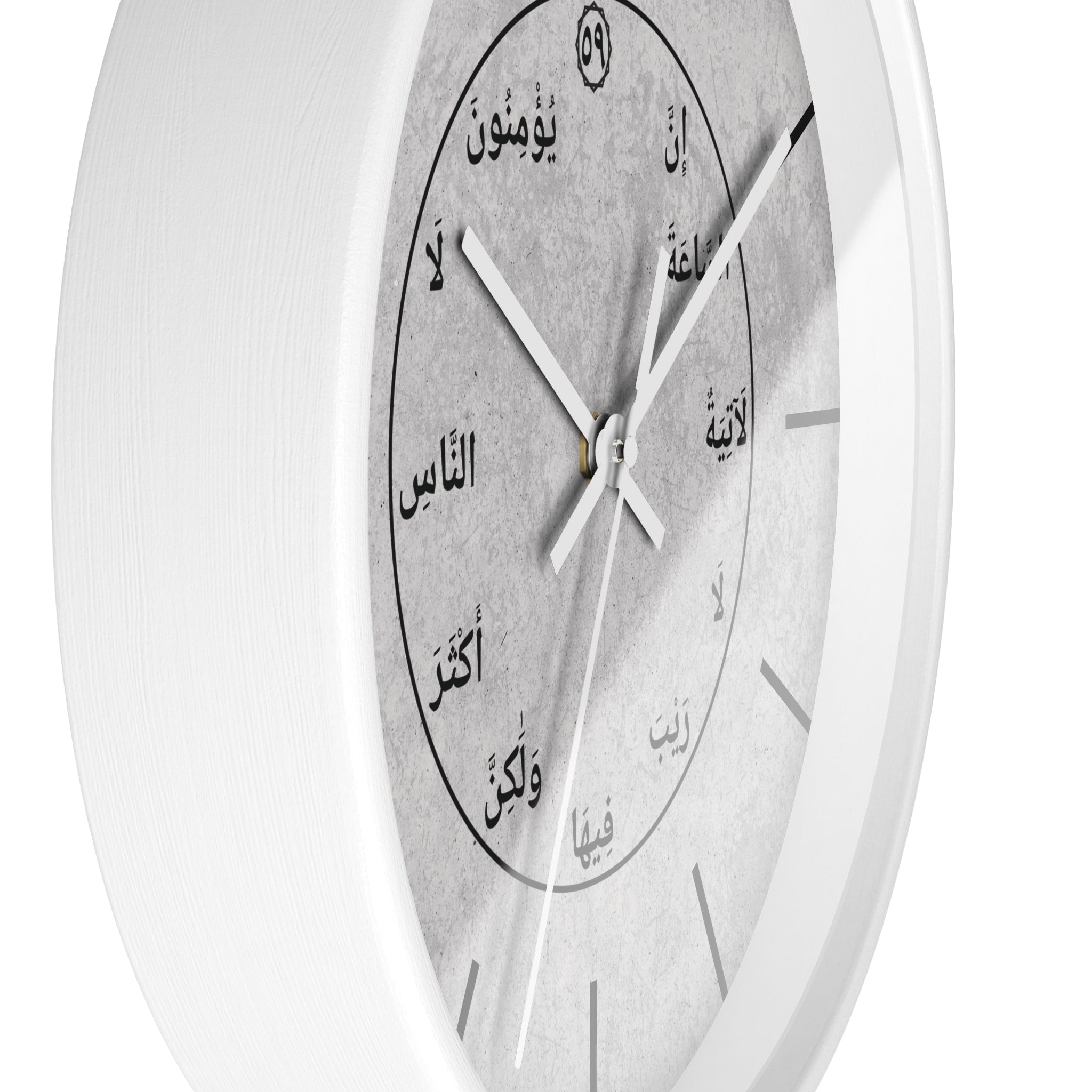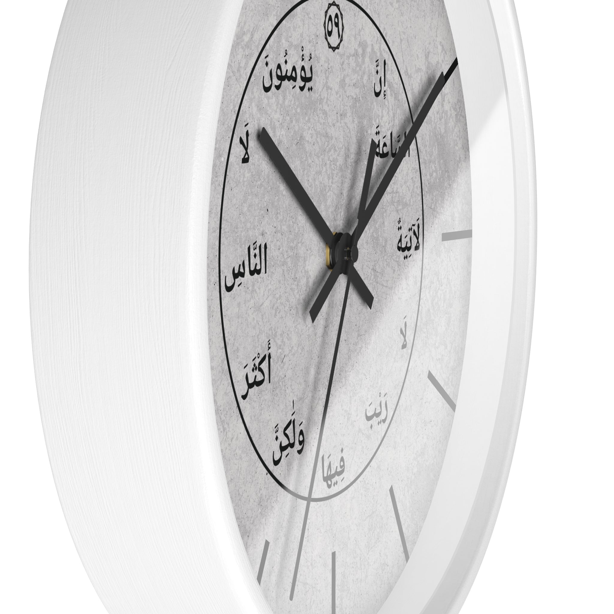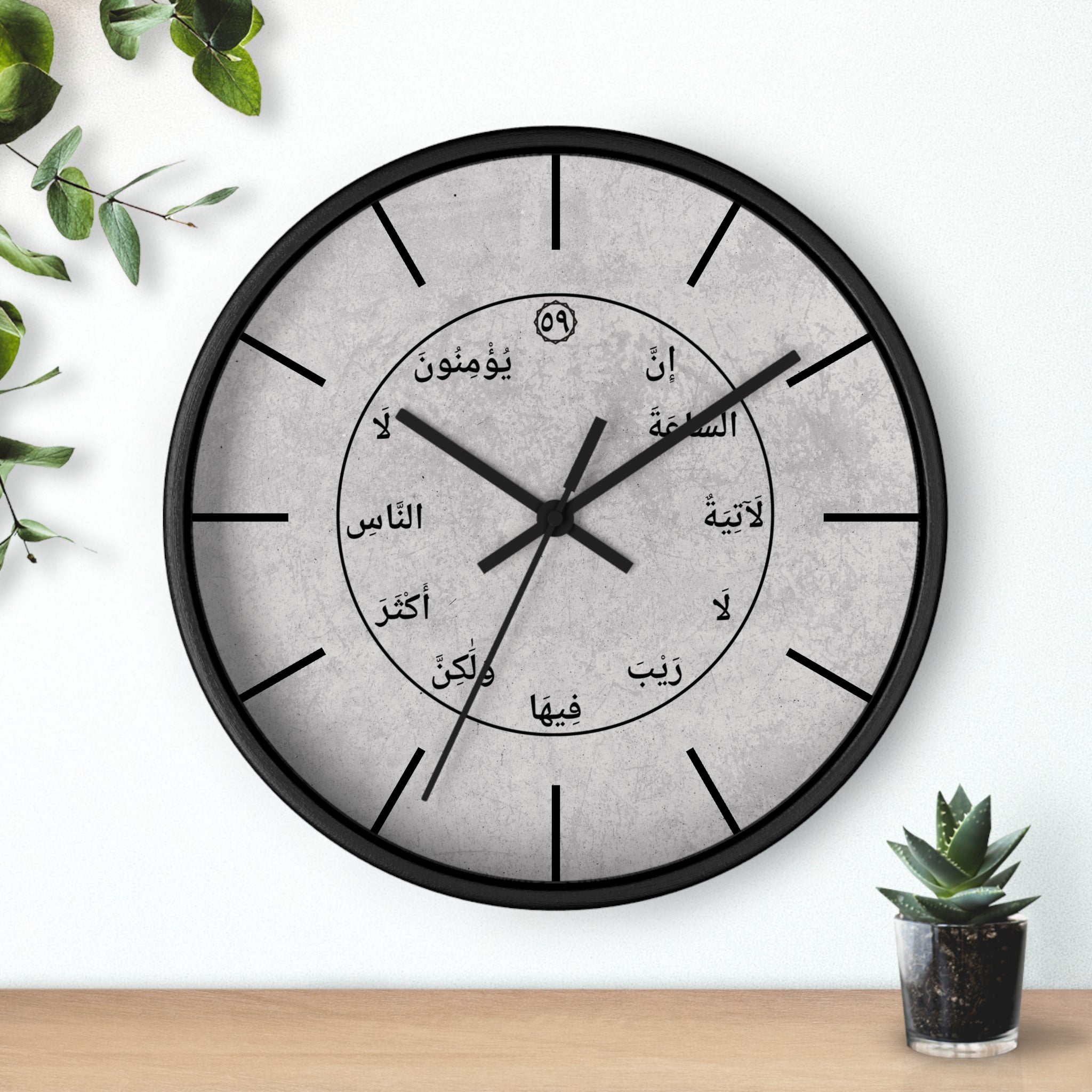 Islamic Wall Clock with Qur'an Verse 40:59 in Arabic - Home Decor for Muslims - Reminder of the Day of Judgment