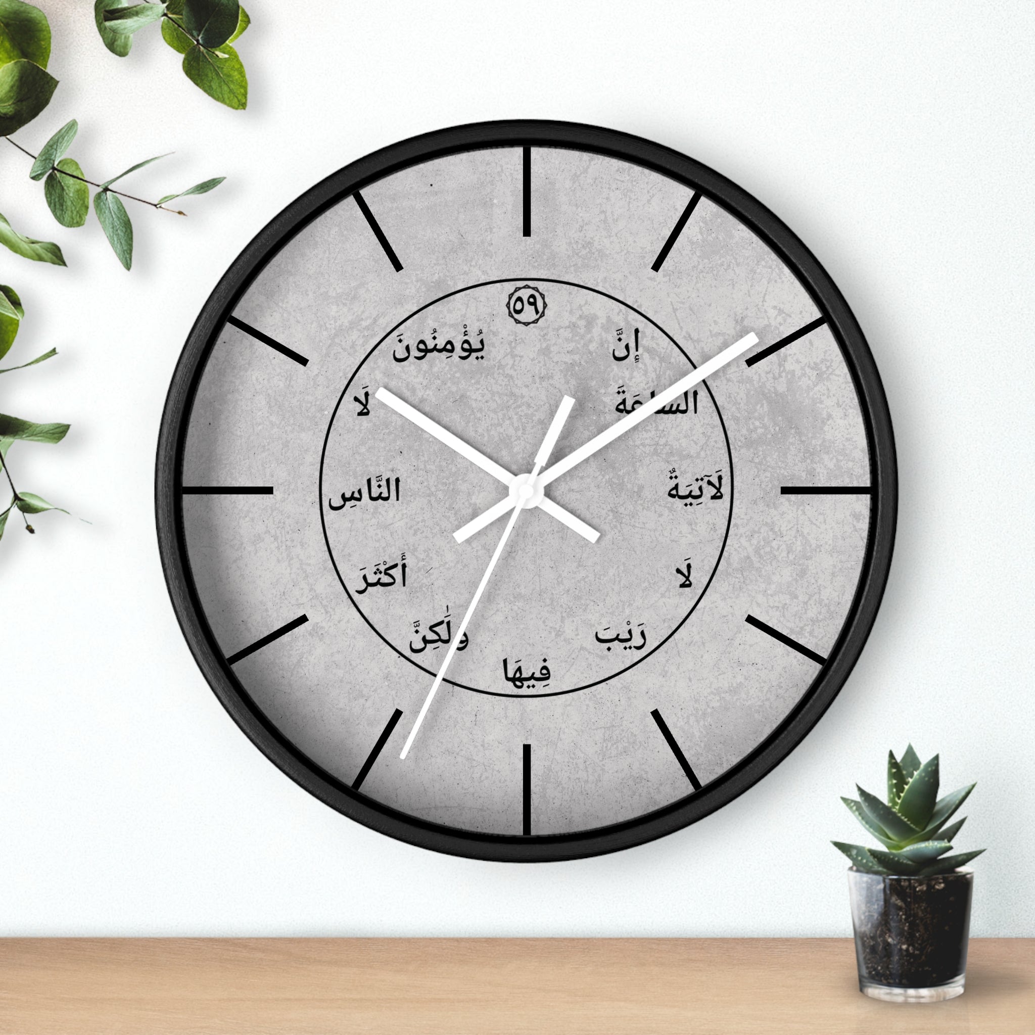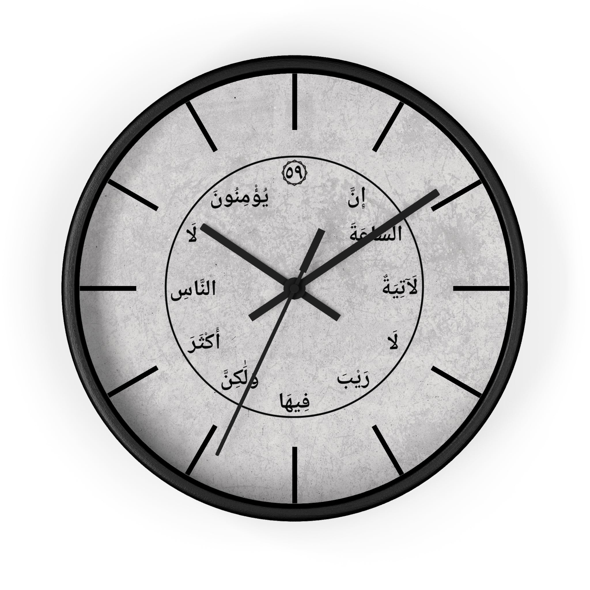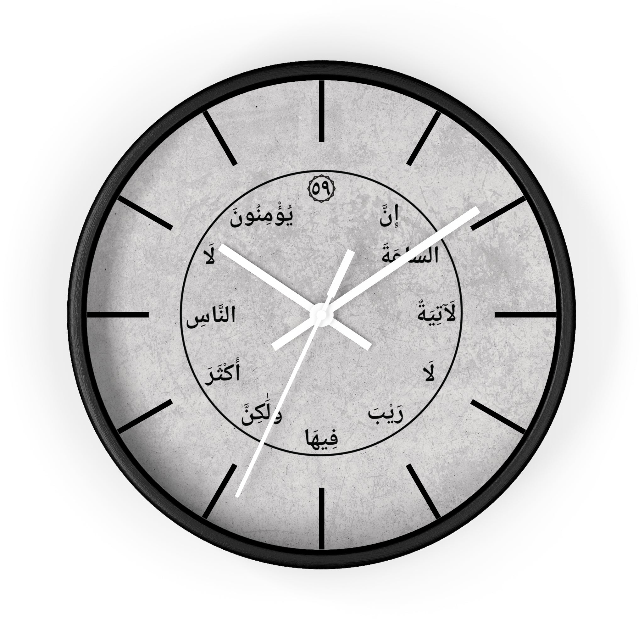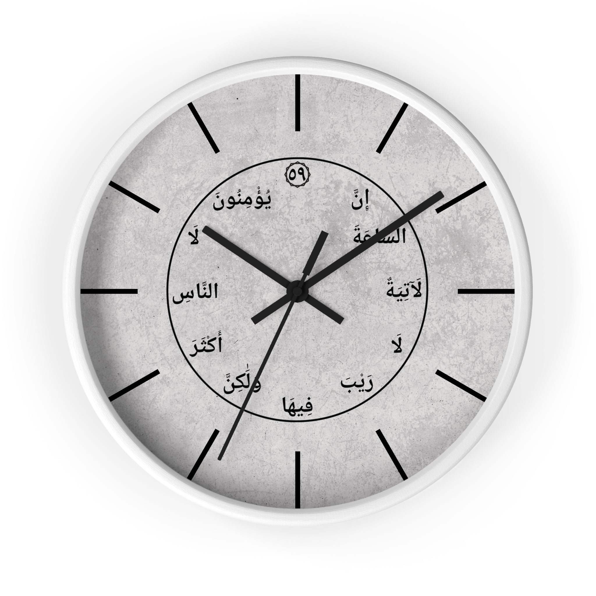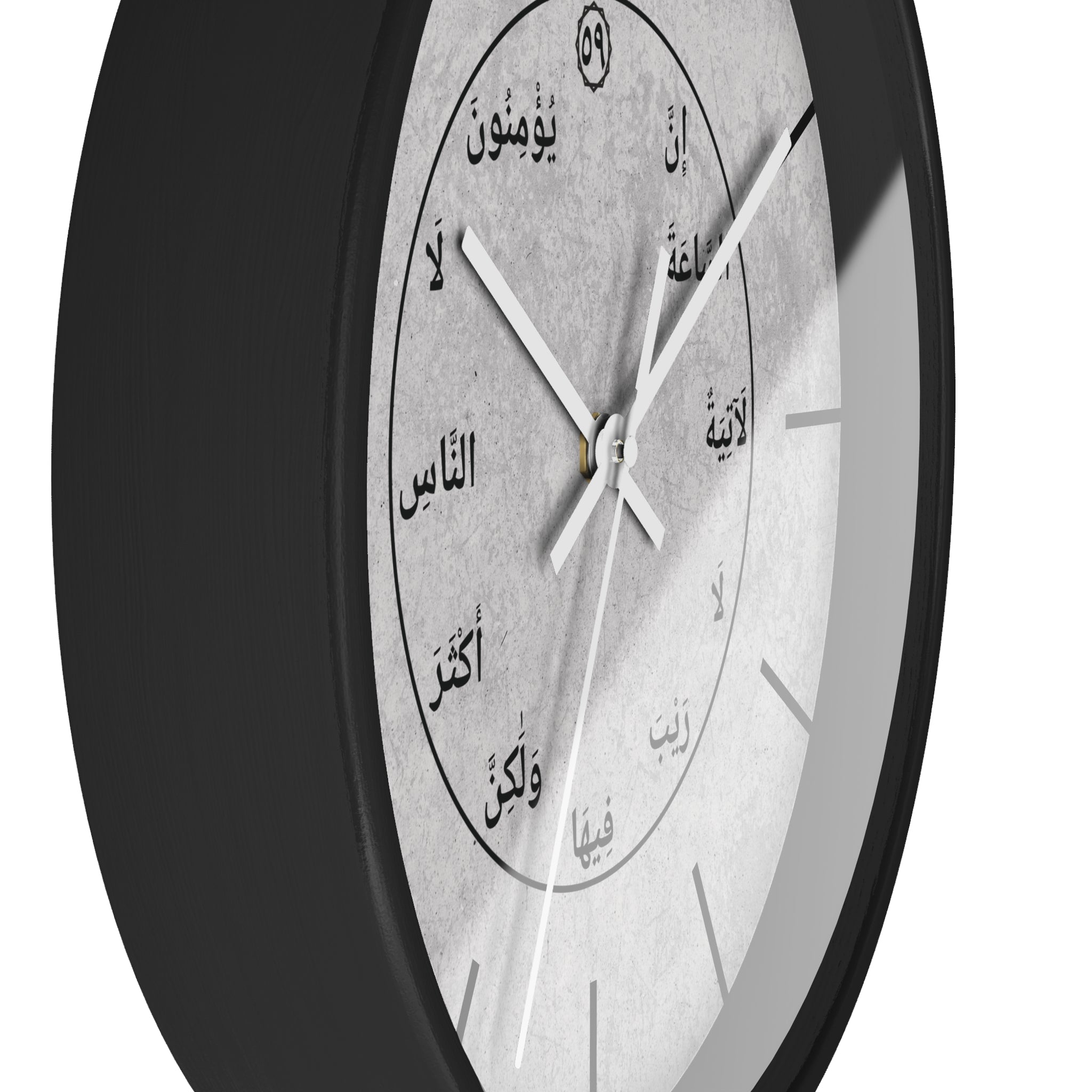 Islamic Wall Clock with Qur'an Verse 40:59 in Arabic - Home Decor for Muslims - Reminder of the Day of Judgment