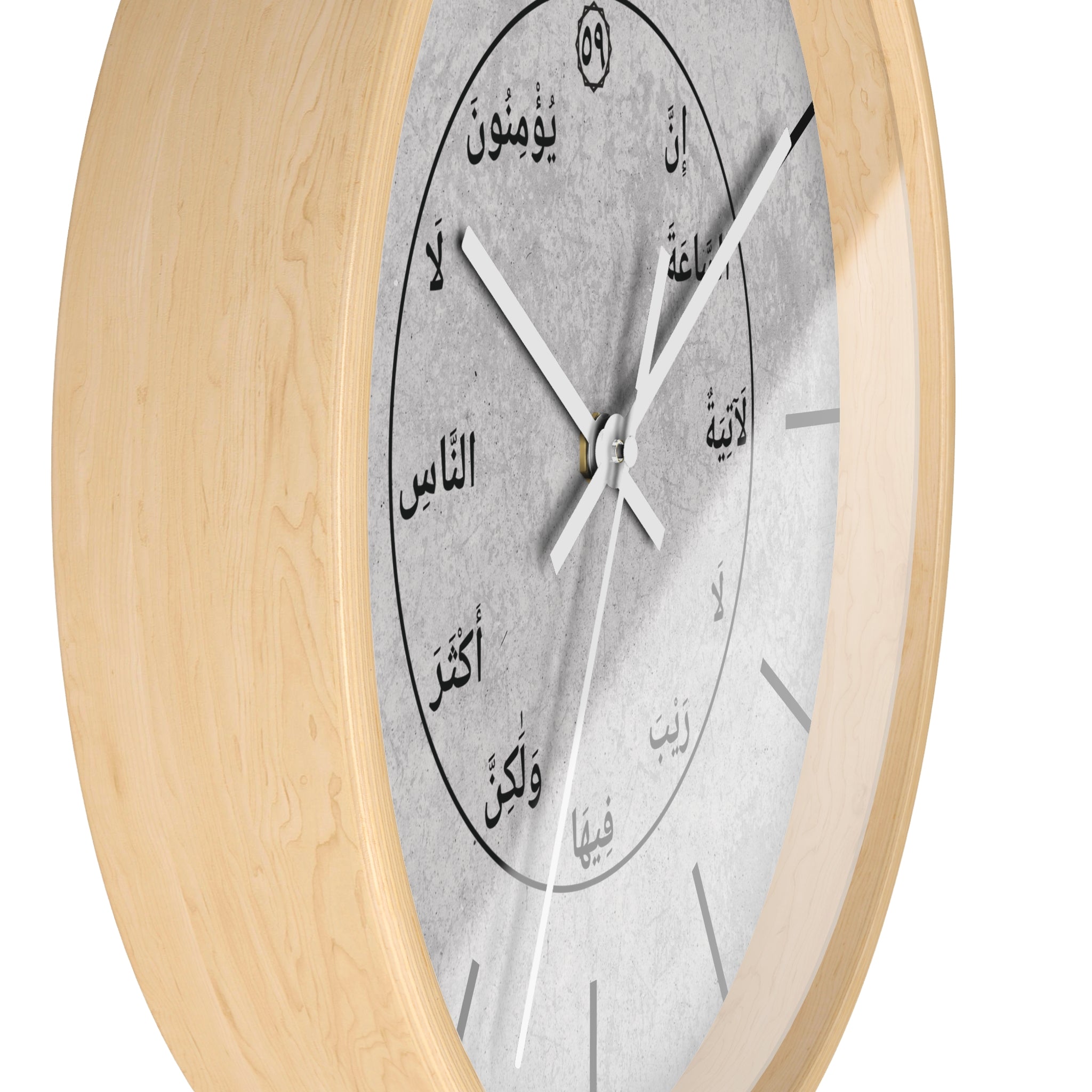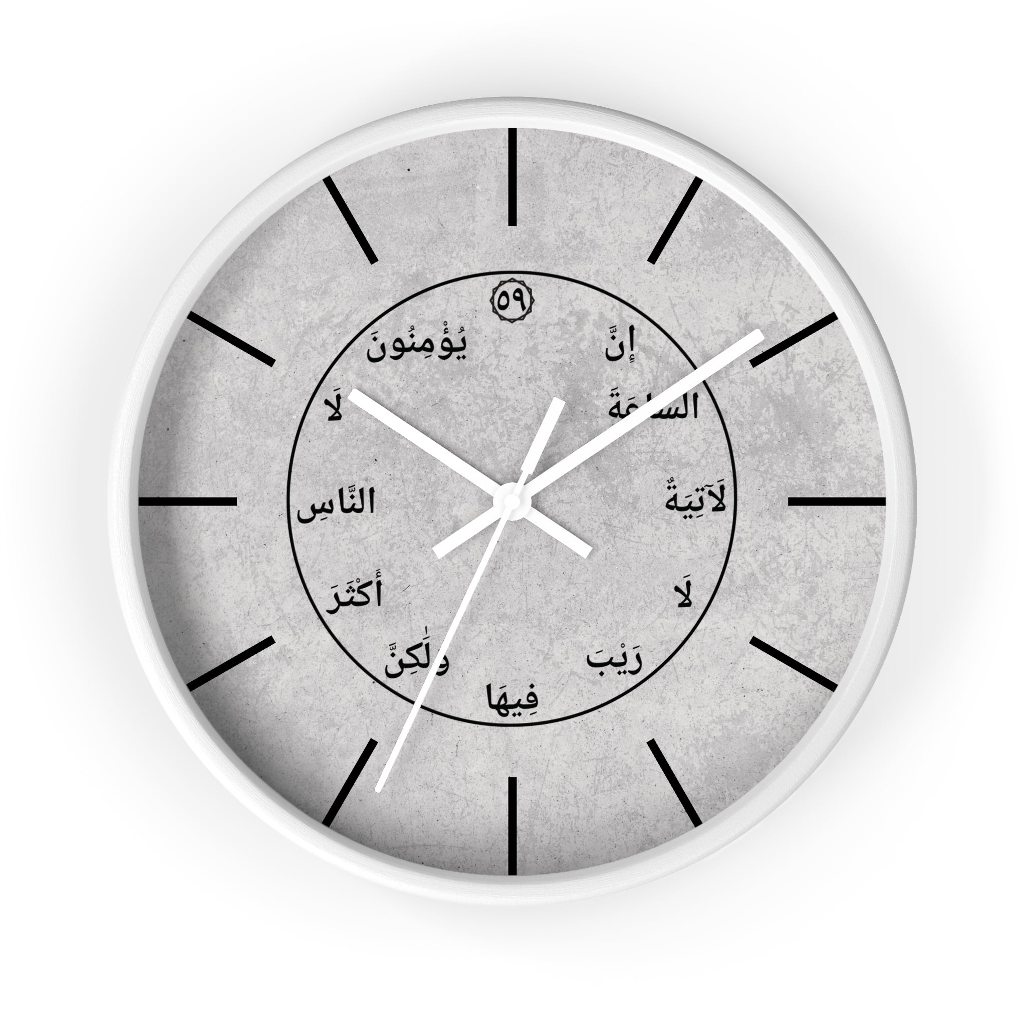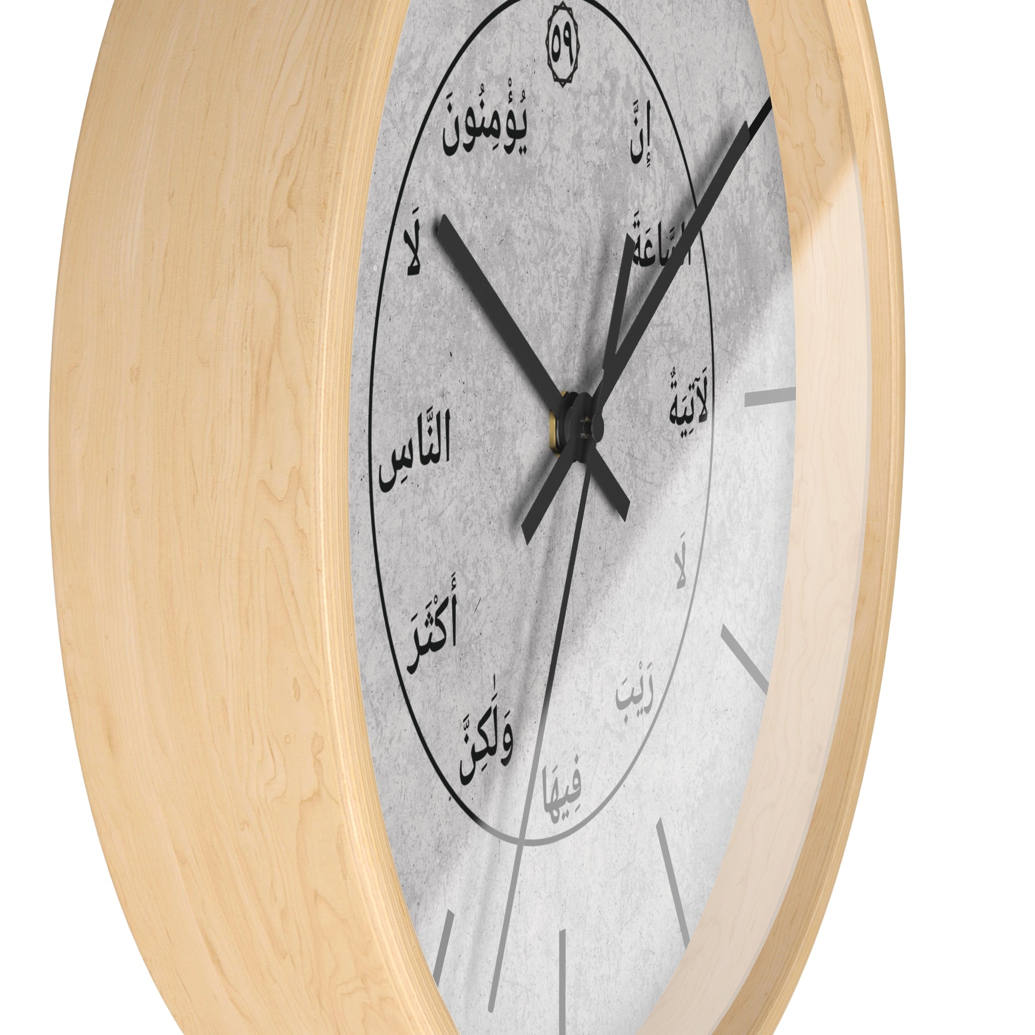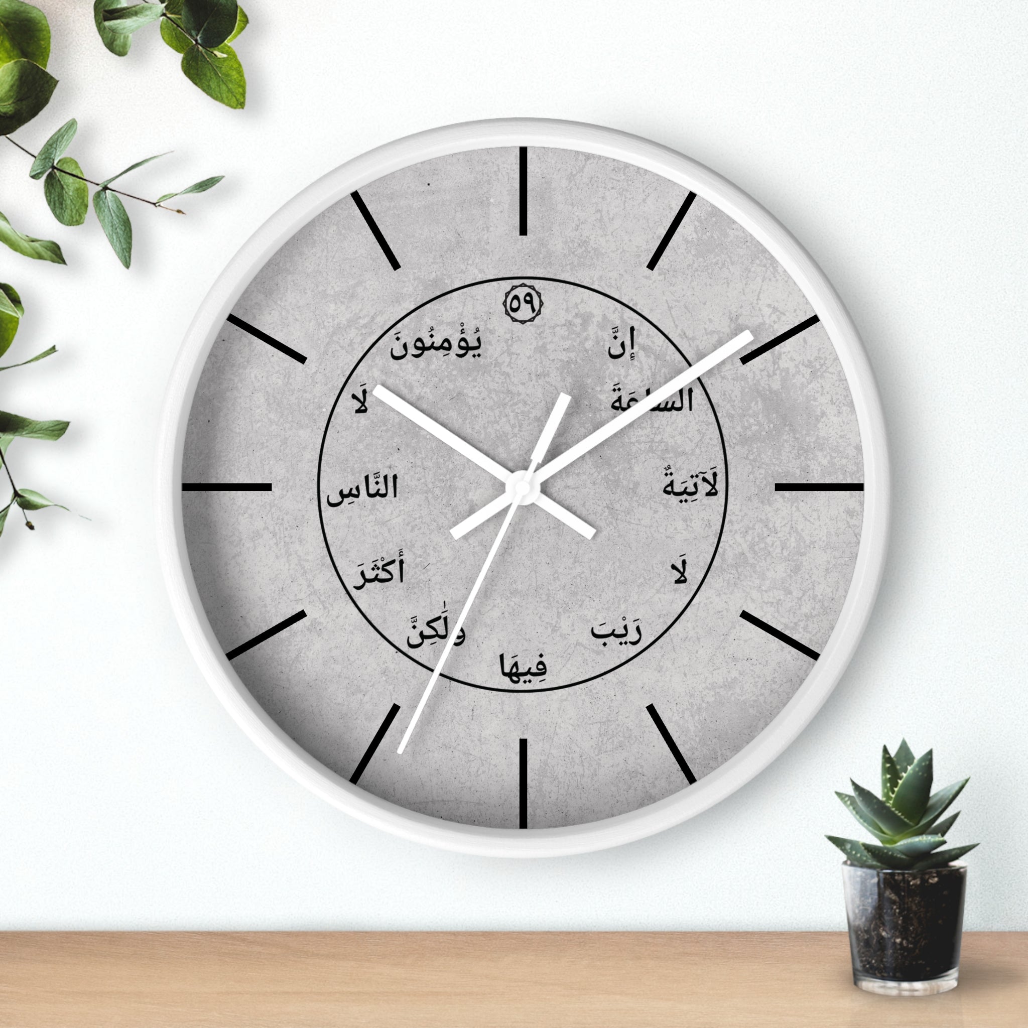 Islamic Wall Clock with Qur'an Verse 40:59 in Arabic - Home Decor for Muslims - Reminder of the Day of Judgment